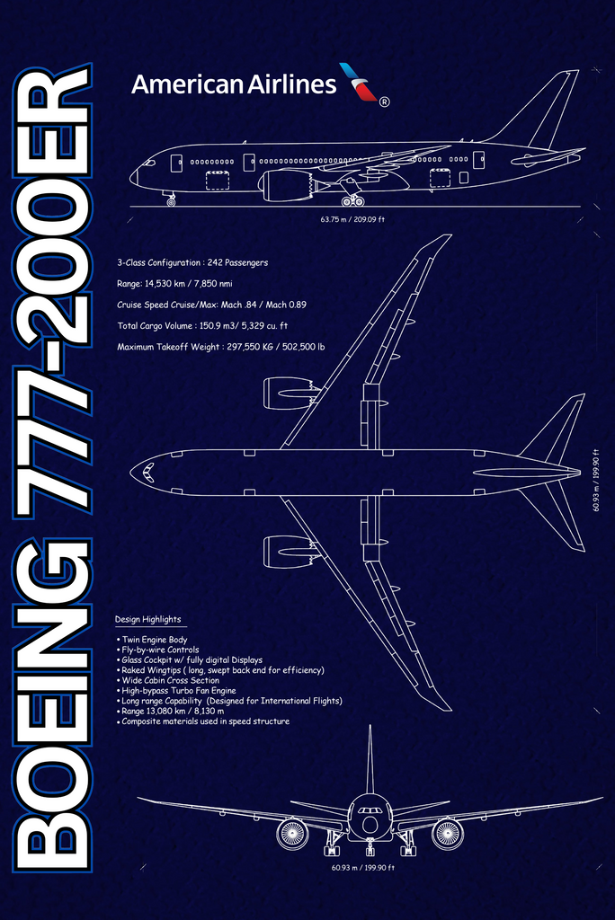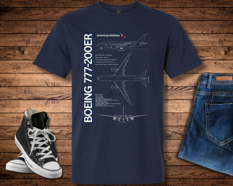 Here is our American Airlines 777 schematic T-shirt! Includes the schematic layout of the 777 flown by American Airlines.