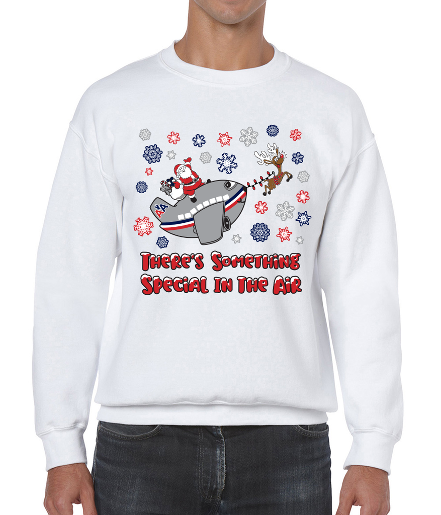 This is our Exclusive Limited Edition Santa AA Something Special in the AIr Christmas Sweatshirt with the old AA Theme "Something Special in the Air" from the 1980's.