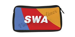 This water resistant travel pouch has SWA on it, perfect for employees and fans of Southwest Airlines. The flip side is black.