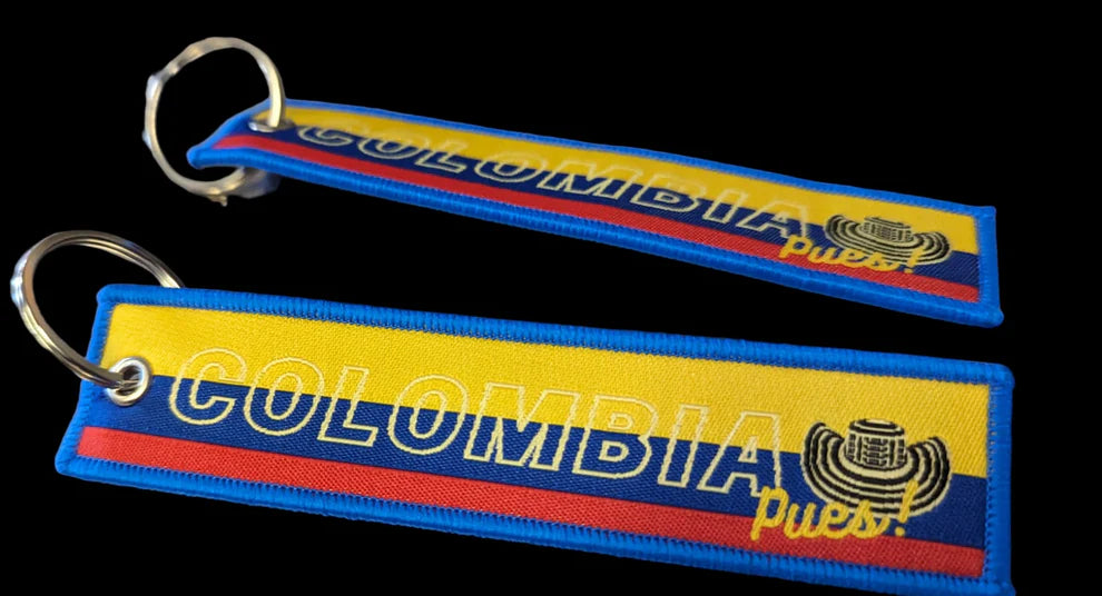 Travel in style with the Colombia Pues! Luggage Tag & Key Ring! Show your national pride wherever you roam, with a colorful flag of Colombia embroidered to the tag. You'll always spot your bag with ease, and securely attach it with the sturdy key ring. ¡Pues, vamos! (Let's go!)
