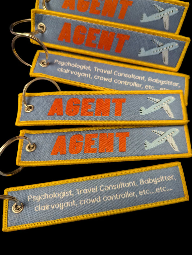 This sleek and professional luggage tag features a stylish "Agent" design, symbolizing the world of airline professionals. The tag is emblazoned with a subtle plane motif, representing the fast-paced travel industry. Perfect for the traveler who wants to carry a piece of the skies with them, whether you're an aviation enthusiast or just love the jet-setting lifestyle. Its durable construction ensures your bags are easily identifiable, while adding a touch of class and identity to your journey.