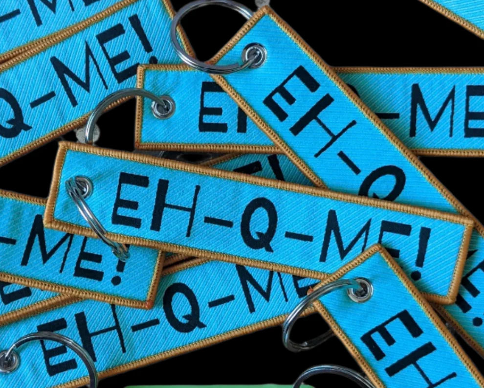 Traveling can be a hassle, but you'll be sure to make a statement with this EH Q MEEE! Key Tag. That's MIAMIAN for EXCUSE ME! Get it? And with your unique tag, you can cut down on baggage mix-ups. So don't forget the EH Q MEEE! and go about your travels with confidence!